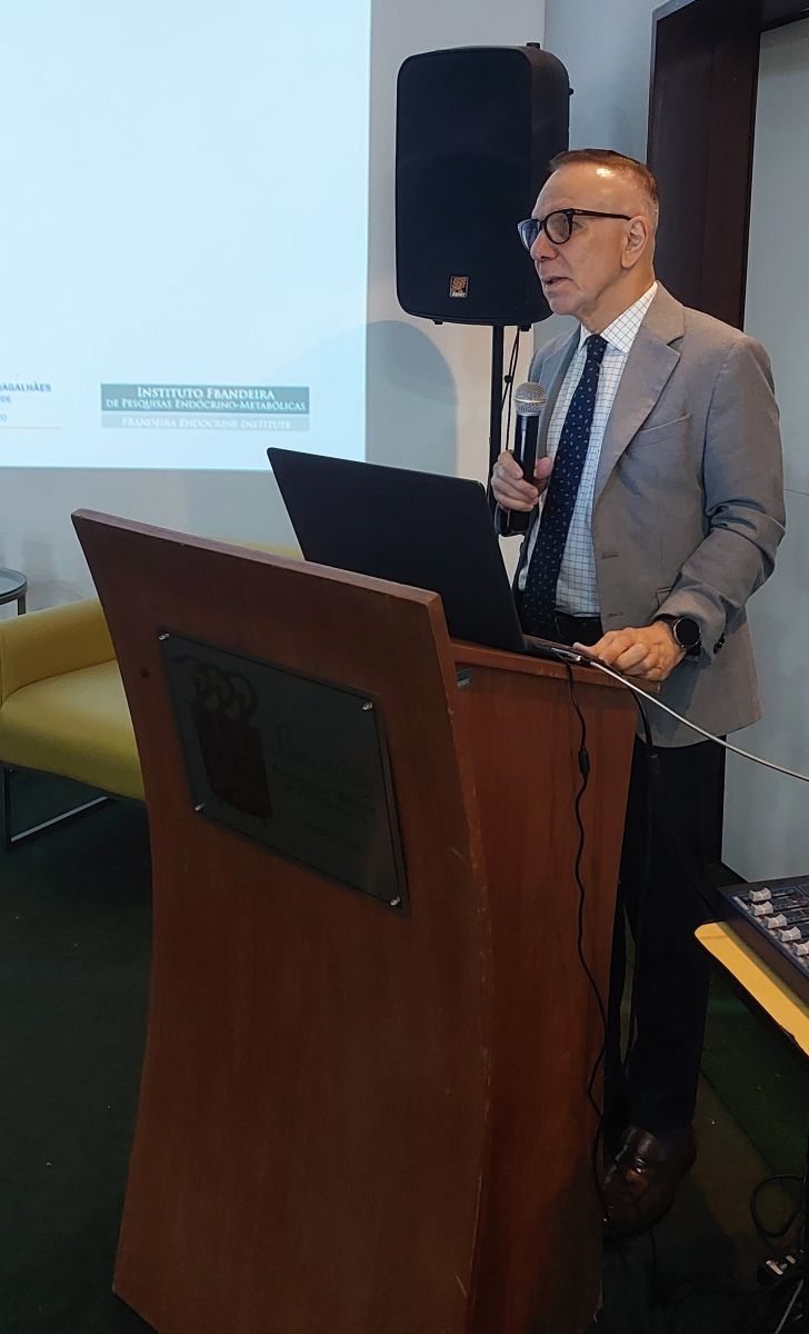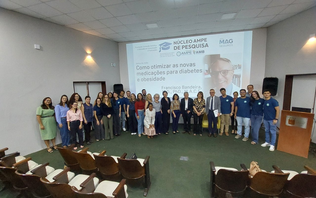 Na última quinta-feira, 23/10, o endocrinologista e clínico geral, Francisco Bandeira, M.D., PhD, M.A.C.E., foi o convidado do Núcleo de Pesquisa da AMPE para falar sobre os estudos e abordagens dos medicamentos dirigidos para diabetes e obesidade, além do contexto alimentar e social, onde o indivíduo que necessita de tais recursos deve estar inserido.