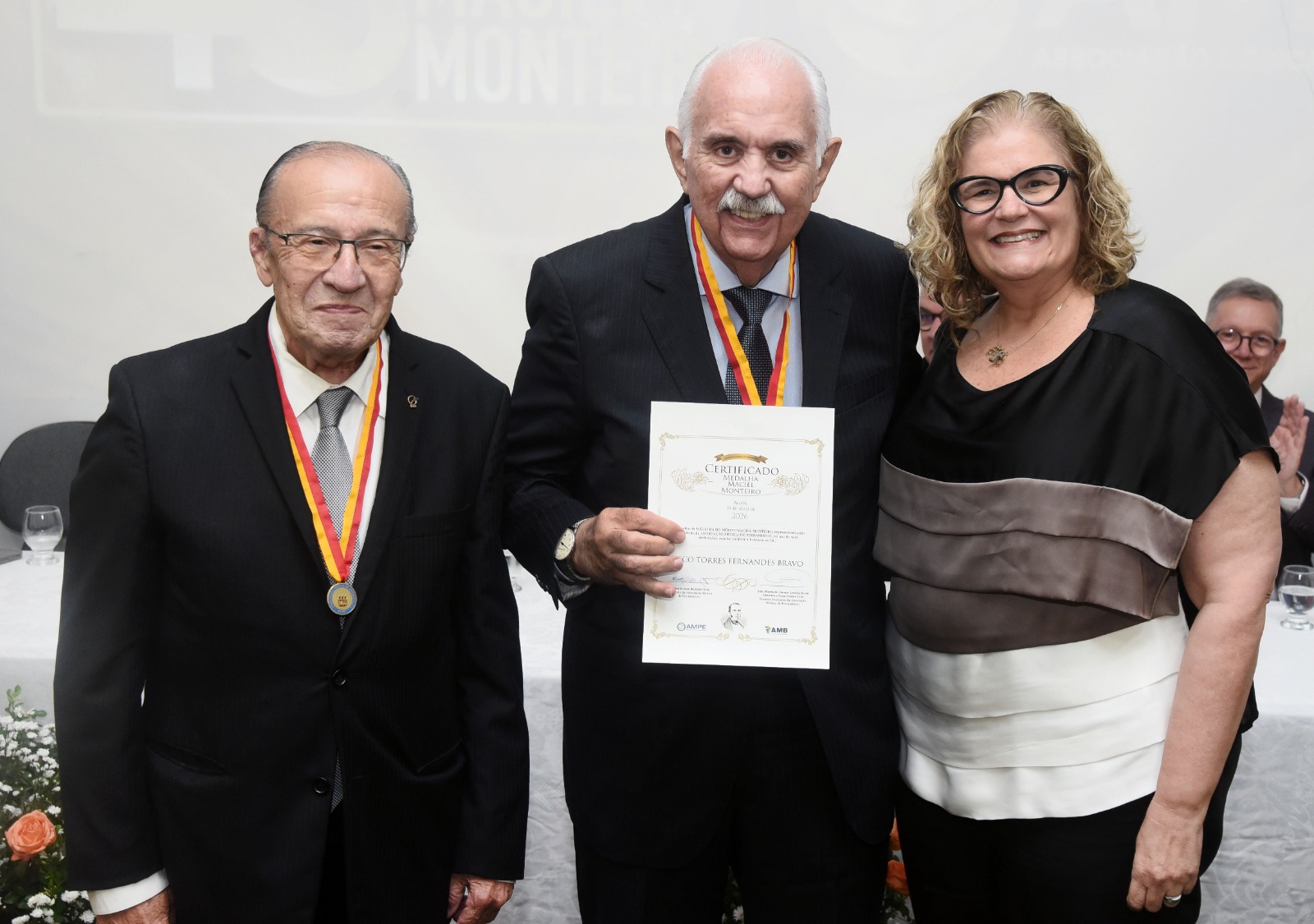 A Associação Médica de Pernambuco comemorou em 10 de abril seus 185 anos, com a realização da 43ª Medalha do Mérito Maciel Monteiro, onde presta homenagem a três médicos pela sua trajetória na profissão.